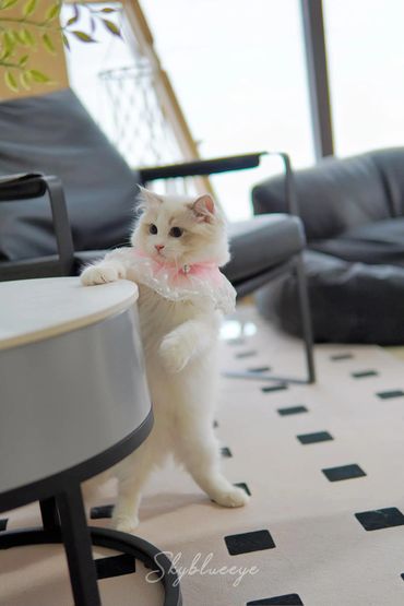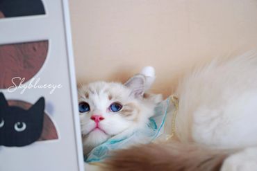The goal of this cattery is to breed Ragdoll cats with sweet faces, strong physiques, rich hairs, and docile and sticky characters, and have gradual)ymet their own requirements in the past 4 years The future development plan of the cattery is to strengthen the characteristics ofcattery breeding and strive to create a unique style of the Skyblueeye family.